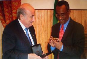 Joseph S. Blatter, presidente da FIFA esteve na passada terça-feira (25 de Maio), na inauguração do relvado artificial e do Centro Técnico, e em diversas audiências oficiais. Trata-se da segunda escala de uma viagem de três dias pela África Ocidental que teve início na Guiné Equatorial no dia anterior. Segue-se o Gabão.