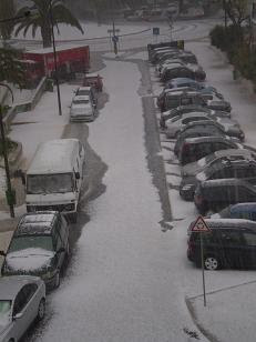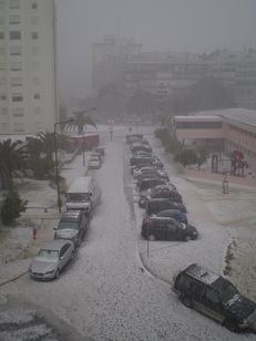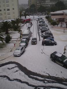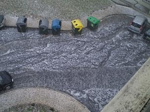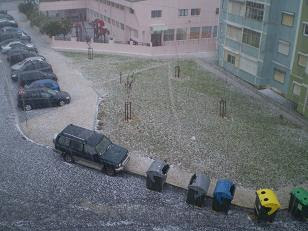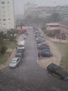 Ontem, dia 29, depois de uma intensa trovoada com muitos relâmpagos e trovões surgiu uma tempestade de chuva de granizo que assolou fortemente a zona norte de Lisboa, afectando Benfica e os seus arredores com inundações, infiltrações, abatimentos e tremendas dificuldades no trânsito de pessoas e viaturas devido à altura do gelo que se concentrou no solo. Tal fenómeno, previsto pelo Instituto de Meteorologia, razão de terem emitido “Alerta Amarelo”, ocorreu num curto período de tempo, entre as 15H00 e as 15H30. As imagens, obtidas no Bairro das Pedralvas, são elucidativas.