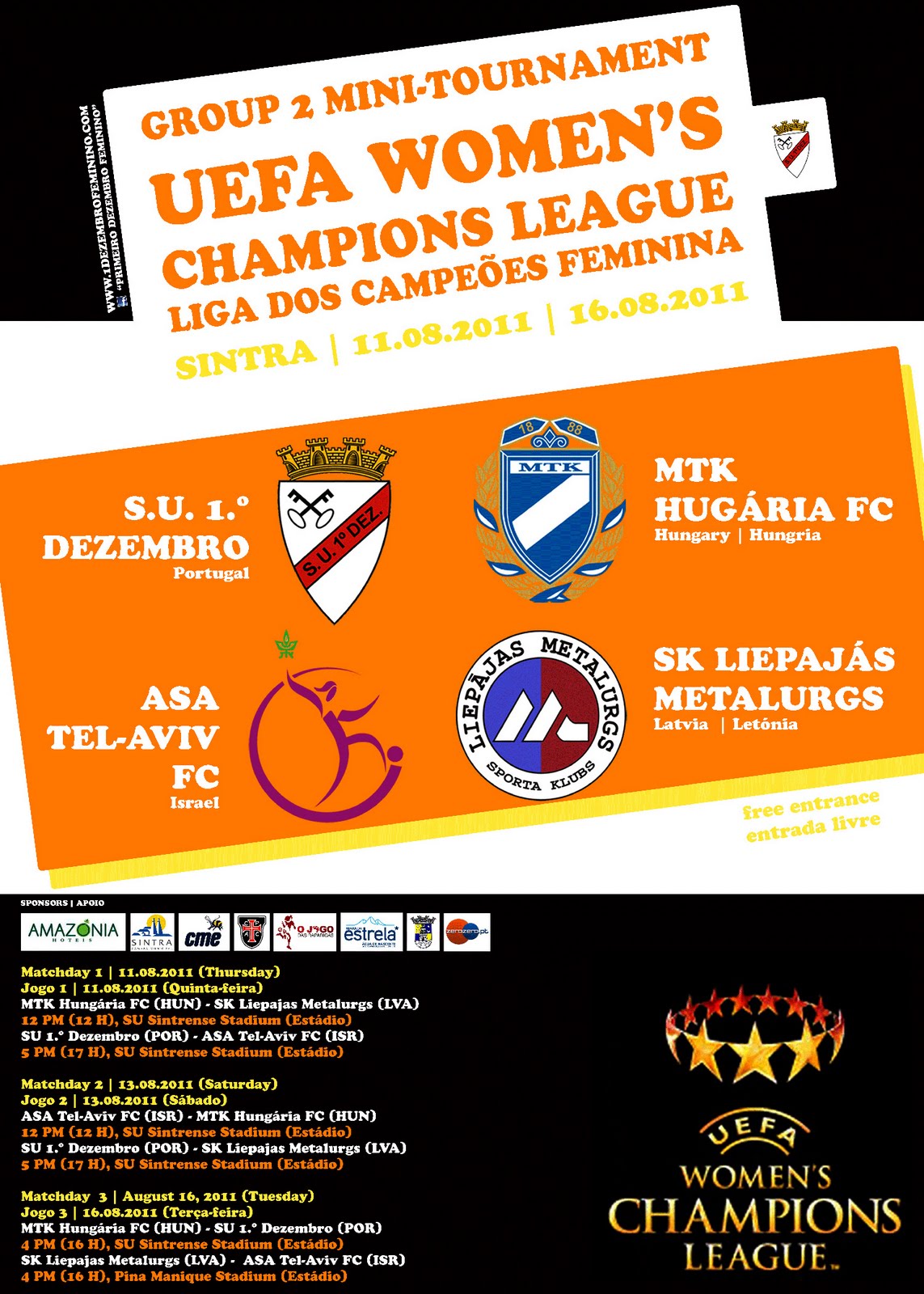 Os dois primeiros jogos da prova foram disputados no dia 11 (quinta-feira) e no Estádio do Sintrense, iniciando-se às 12H00 a partida entre húngaras e letãs, cujo resultado foi favorável às magiares por 12-0, com 2-0 ao intervalo.